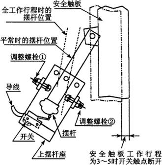 (6)调整开关的安装位置(利用开关的安装用长圆孔),使安全触板行程为3~5mm时,开关触点断开,如图7.7-8所示。