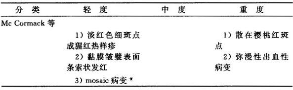 2.辅助检查 胃镜检查是确诊本病的主要方法,内镜下病情的分类,见表2-4。