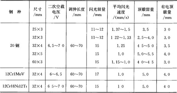 表4.5-2 20钢、12Cr1MoV及12Cr18Ni12Ti钢管连续闪光对焊的焊接参数