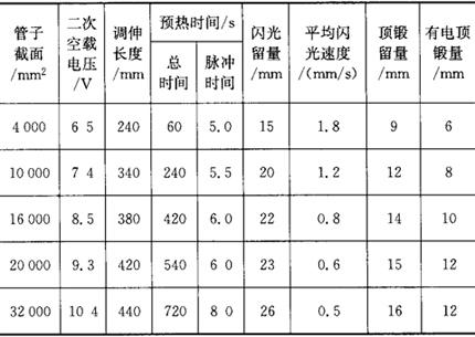 表4.5-3 大断面低碳钢管预热闪光对焊的焊接参数