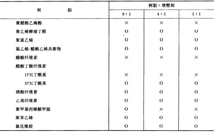 【释文】: 制法 由间苯二甲酸和辛醇酯化而得。 性质 透明油状液体。微具气味。分子量390.5。色泽(APHA)<50。酸度(以醋酸计)≤0.01%。酯含量>99.5%。水分≤0.1%。相对密度0.982~0.983(25℃)。粘度87mPa·s。流动点-43~-44℃。沸点241℃(667Pa)。闪点(开杯法)232℃。着火点265.5℃。蒸气压92Pa(200℃)。膨胀系数0.00076/℃(20℃)。在水中的溶解度<0.01%(20℃),水在本品中的溶解度0.07%(20℃)。相容性好,见表1-44。 表1-44 间苯二甲酸二(2-乙基己醋)与树脂的相容性
