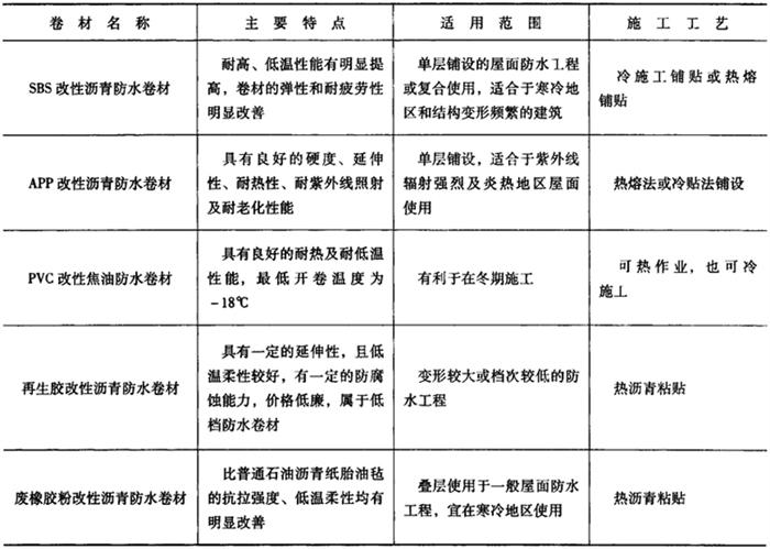 表8-7 常用高聚物改性沥青防水卷材的特点和适用范围