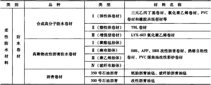 | 释义 | 防水材料的分类 选好防水材料是搞好防水工程的关键,是防水设计水平的具体体现。设计人员应详细了解防水材料的技术指标和性能特点,以便于防水材料的合理选择。 防水材料的种类很多,分类方法也各不相同。我国目前通常将防水材料分为防水卷材、防水涂料、密封材料、刚性防水材料和其他防水材料。其中刚性防水材料主要是指防水砂浆和防水混凝土;防水卷材、防水涂料和密封材料,又分可合成高分子材料、高聚物改性沥青材料和沥青材料制作。防水材料的具体分类如表10-2所示。 表10-2 防水材料的具体分类