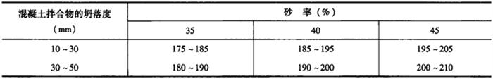 普通防水混凝土拌合水用量与砂石材料、搅拌条件等因素有关,在确定拌合水用量时,可根据混凝土拌合物的坍落度、砂率,参见表8-20选择。最后根据混凝土的试配结果确定。 表8-20 普通防水混凝土拌合用水量