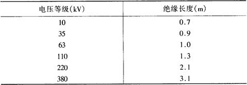 如果用绝缘操作杆进行工作,则绝缘操作杆必须保持表2-13所示的最小有效绝缘长度。 表2-13 绝缘操作杆的最小有效绝缘长度