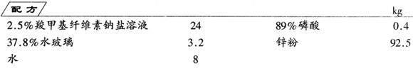 按配比将全部物料混合均匀,即成为富锌底漆。临用前进行调配,现配现用。调配后4h即可固化。本品防锈性、耐候性、耐热、耐磨、耐溶剂性均好。