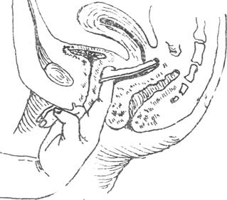 图5-3-2 测量自后穹窿到耻骨联合后缘的距离 (3)选择相应直径的阴道隔膜进行试放,见图5-3-3。