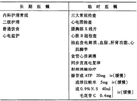 说明:(1)对于折返性心动过速首选腺苷或维拉帕米,但有心功能减退或低血压者慎用维拉帕米。心功能减退者首选洋地黄。 (2)对于血流动力学不稳定的患者应考虑用直流电复律。 (3)对于反复发作的房室结或房室折返性患者,可行射频消融术达到根治目的。 |