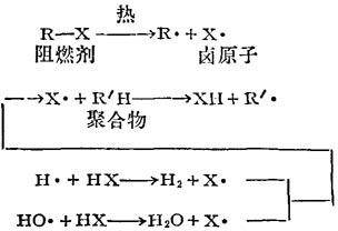 | 释义 | 阻燃剂 【释文】: 与无机材料相比,塑料等有机高分子材料的耐热性和耐燃性远为逊色。它们受热易分解,遇火易燃烧。因此,在塑料的稳定化中,阻燃是一个重要课题。特别是近年来塑料制品在建筑、交通工具、电气电子、日用家具等领域的应用日趋扩展,阻燃问题越发突出,它不仅具有经济上的意义,而且还有着保护人身安全的重要性。由塑料燃烧而导致火灾的危险迫使许多国家制定了法规,对其燃烧性能及应用作了严格限制。同时,阻燃剂的研究和应用受到了极大重视,成为塑料助剂中发展最快的品种。 聚合物的燃烧是一个非常激烈复杂的热氧化反应,具有冒发浓烟或炽烈火焰的特征。燃烧的一般过程是在外界热源的不断加热下,聚合物先与空气中的氧发生自由基链式降解反应,产生挥发性可燃物,该物达到一定浓度和温度时就会着火燃烧起来。燃烧所放出的一部分热量供给正在降解的聚合物,进一步加剧其降解,产生更多的可燃性气体,火势在很短的时间内就会迅速蔓延而造成一场大火。 阻燃剂是一类能够阻止塑料引燃或抑制火焰传播的助剂。根据其使用方法可分为添加型和反应型两类,添加型阻燃剂是在塑料的加工过程中掺入塑料中,多用于热塑性塑料。反应型阻燃剂是在聚合物合成过程中作为单体化学键合到聚合物分子链上,多用于热固性塑料,有些反应型阻燃剂也可用作添加型阻燃剂。按照化学结构,阻燃剂又可分为无机和有机两类,在这些化合物中多含有卤素和磷,有的含有锑、硼、铝等元素。 阻燃剂的作用机理目前研究的还很不深入,但其基本功能在于干扰氧、热和可燃物这三个维持燃烧的基本要素,这可通过如下几个途径实现。 (1)阻燃剂分解产生较重的不燃性气体或高沸点液体,覆盖于塑料表面,隔绝氧气和可燃物的相互扩散。 (2)通过阻燃剂的吸热分解或吸热升华,降低聚合物表面温度。 (3)阻燃剂产生大量不燃性气体,冲淡燃烧区域的可燃性气体浓度和氧浓度。 (4)阻燃剂捕捉活性自由基,中断链式氧化反应。 一种阻燃剂可通过一种或多种方式发挥阻燃效能。以下简要介绍几类主要阻燃剂的作用机理。 1.含卤化合物 有机类和无机类含卤阻燃剂的作用机理是类似的,都是捕捉活性自由基。在高温下含卤阻燃剂分解产生的卤原子,与聚合物反应生成卤化氢。其与高活性羟基自由基或氢原子反应,生成水或氢气,从而中断链式氧化过程,使燃烧减缓,以至停止。反应过程如下:
