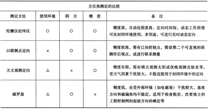 注:〇表示不受限制;△表示受完全限制;×表示受重大限制。 目前有不少厂家研制出了全站型自动陀螺仪(如SOKKIA、AGP1等),在无需进行反向点测量和时间测量的情况下,10min内便可以6″的精度,自动测定出真北方向,操作过程简便。 |