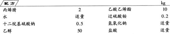 将乙酸乙烯酯、丙烯腈、十二烷基硫酸钠和适量水在反应器中加热搅拌,然后加入引发剂过硫酸铵,控制温度在40~50℃,反应107min,得共聚物。