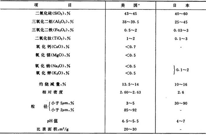 表13-4 国外陶土的一般性质