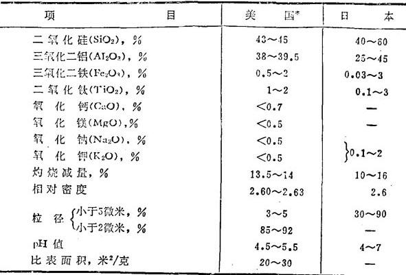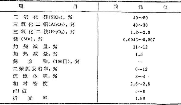 | 释义 | 陶土,高岭土、白土、粘土、瓷土 【结构式】: 水合硅酸铝 A1↓(2↙↙O3·2SiO2·H2O 【释文】: 制法 本品主要是由岩石中的火成岩、水成岩、变成岩等母岩经自然的风化作用分解而成。生产过程包括采矿和加工两个阶段,加工过程又分湿法和干法两种。一般,由湿法制得的产品较干法产品纯净,粒度分布好。用于塑料的陶土多数是在450~600℃经煅烧除去水分的品样,又称煅烧陶土。 性质 纯陶土的粒子呈薄六角板状结晶,多水陶土粒子呈中空管状、针状等结晶,用于塑料的陶土最好是呈六角板状体。陶土的颜色随产地和杂质(特别是铁)含量而异,为浅灰色、淡黄色甚至棕色,颜色较深者不适宜用作填充剂。煅烧陶土的色泽较好,纯白而明亮。湿法陶土经强还原剂如亚硫酸氢锌漂白后色泽大为改善。陶土的其它性质也随产地和加工方法而异,一般纯品的相对密度为2.6~2.63,折光率1.56,pH值5~6。常温下稍溶于盐酸或醋酸,遇氟硅酸(H2SiF6)即分解。表9-3为我国苏州陶土的性质,表9-4为美国和日本陶土的一般性质。 表9-3 苏州陶土的性质