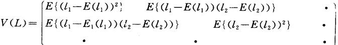 随机向量的方差指 V(L)=E{(L-E(L))(L-E(L)′} (2.3-8) 于是