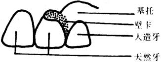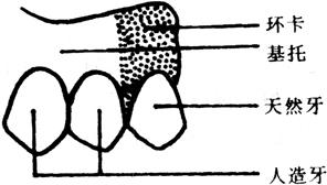 图31-9 环卡示意图 (2)壁卡。为位于基牙唇、颊侧颈部的三角形卡环,看似增大的牙龈乳头。主要用于前牙缺失,或前牙为基牙者(图31-10)。