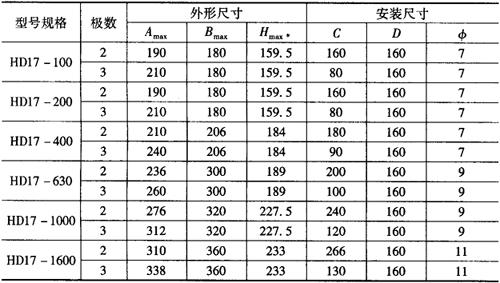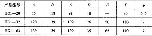 注:*H是刀片打开到-定角度时的尺寸。 (2)HG1熔断式隔离器外形及安装尺寸见图1-8和表1-20。