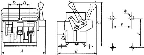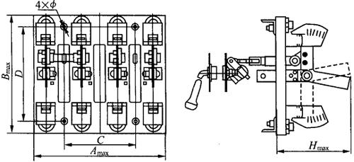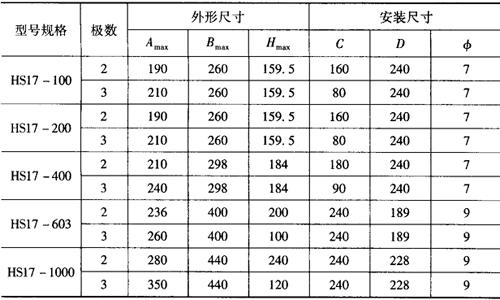 (4)HS17转换隔离器中央正面杠杆操作式的外形及安装尺寸见图1-10及表1-22。