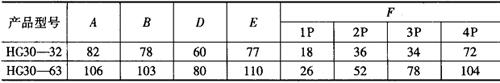 图1-9 HG30熔断式隔离器外形及安装尺寸 表1-21 HG30熔断式隔离器外形及安装尺寸/mm