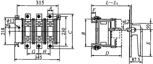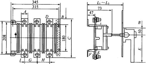 图1-12b HH15-160、225、400型隔离开关熔断组外形及安装尺寸