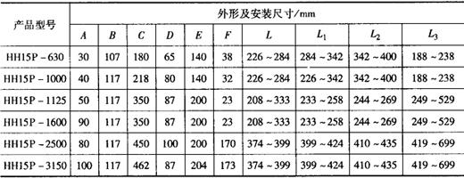 (3)HH15P(QP)系列隔离开关外形及安装尺寸图1-14和表1-26。