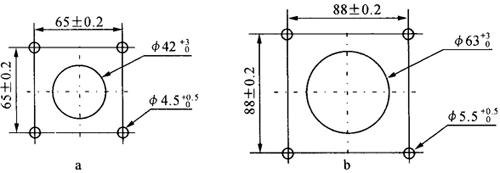 a.HH15A-200型、HH15P-250型、HH15-125型的面板开孔尺寸 b.HH15A-400型及以上、HH15P-630型及以上、HH15-160型及以上的面板开孔尺寸 |