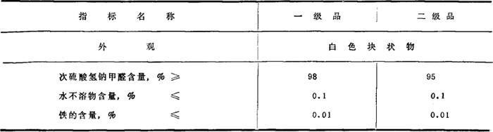 | 释义 | 雕白块 别名 吊白块、蚁硫漂剂、次硫酸氢钠甲醛 分子式 NaHSO2·CHO·2H2O 分子量 154.12 性能 白色小块或粉末,熔点约60℃,分解温度高于80℃。在常温时较稳定,高温时分解成亚硫酸盐。与空气接触易氧化及潮解。溶于水呈偏碱性。在中性或碱性溶液中,高温下起还原作用。本品较保险粉稳定。 质量规格 HG2-383-80