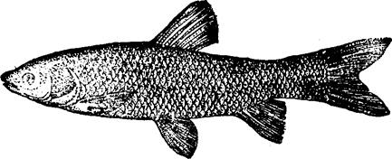 。体长近圆筒形,头比草鱼大,背部和体侧上半部青黑色,鳍灰黑色。咽齿1行4/5(1),臼状,光滑,适于碾压贝类等硬壳饵料。(图2-1)