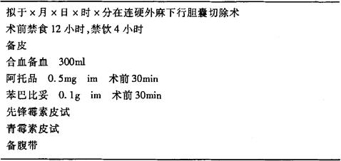 注意:(1)大多数病人不需手术治疗,可口服消炎药与利胆药。 (2)可采用腹腔镜手术,需全麻,备创可贴,术中插胃管。 手术医嘱