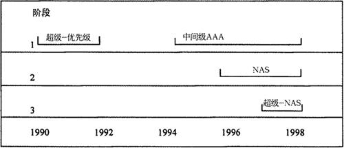 该损失曲线突出显示了30年期抵押物固定利率单户贷款池预期发生损失的时间。该曲线的形状突出显示了损失通常不在第一年发生(因为房产没收程序通常会持续1年以上),但通常集中在第3年至第7年。在这些年期间,业主尚无大量时间摊还本金或享受住宅价格上涨所带来的好处。这与损失曲线上更长期的部分明显不符。在更长期的部分,由于贷款的老化和业主权益的累积,损失变得相当罕见。 NAS和超级NAS债券 在联邦机构CMO债券和非联邦机构债券中,我们可以将计划摊还差级债券包含在内,以为PAC债券提供提前还款保护,这种保护来自结构中的支持级债券。在非联邦机构债券市场中,为某些较优先的差级债券提供提前还款保护的另一种结构是非加速优先级(non-accelerated senior,NAS)债券。 结构的发展 NAS市场已经历了三代的结构发展。图15.2显示了这些发展阶段。第一代的NAS发展是超级-优先级债券,它在20世纪90年代初期的非联邦机构CMO债券中十分常见。超级-优先级债券是为减轻老年投资者对非联邦机构贷款池的潜在信用风险的担心创建的,这些贷款池具有相对较高的加州贷款比例。这里的思路是:假如评级机构要求含有较高加州贷款比例的证券具有6%的次级债券,那么假如次级债券的比例被提高至16%,投资者对信用的潜在忧虑应可得以缓解(见图15.3)。