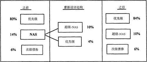 在1992年至1993年左右,随着加州住宅市场的改善,超级-优先级结构淡出了市场,但AAA中间级债券的概念重新出现于1994年,成为一种设计比在计划摊还债券(PAC)市场中具备更佳赎回保护的AAA级债券的方法。 尽管AAA中间级债券结构受到了欢迎,但由于AAA中间级债券不符合《雇员退休收入保险法案》(ERISA)的条件,发展的第二个阶段出现了。ERISA条件的符合是将养老基金投资者带入这个市场的一个重要因素。ERISA准则规定,AAA中间级债券的次级地位使其不能成为养老基金的合格投资工具。因此,华尔街发明了非加速优先级(NAS)债券。 NAS债券具有AAA中间级债券的所有好处再加上符合ERISA的条件。这是由于NAS债券与结构中的所有其他优先级债券同等承担损失(即它不是次级的)。 NAS债券的创建方式与PAC债券相似,因为其还款计划使其他优先级债券的平均期限具有更高的波动性。由于这个还款计划(即整个前5年是提前还款封锁期,然后是与次级债券相似的提前还款保护递减的计划),只有在所有其他优先级债券都完全清偿后,NAS债券才能提前于计划获得本金。因此,所有优先级债券都为NAS债券提供了缓冲。 NAS发展的最后一个或第三个阶段是超级NAS。超级NAS的创建目的是进一步稳定NAS债券的平均期限状况。在结构上,超级NAS的创建如图15.4所示。