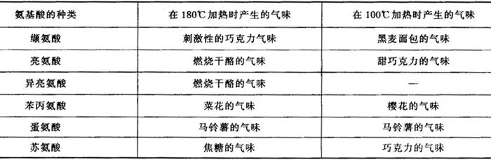 在生产上,可用控制还原糖的用量或增减氨基酸的量来调节褐变的程度,但是调节氨基酸用量不如调节用糖量方便。改变pH(或)和温度也是控制褐变反应的重要手段。此外,在生产时还应注意调节炉内的相对湿度来控制褐变反应,炉内相对湿度大约为30%时,褐变反应速度最快。 (三)香味 面包坯在高温烘焙的过程中,表皮褐变的同时,也产生了面包特有的风味。这些特有风味是由各种羰基化合物形成的,其中醛类起主要作用,是面包风味的主体。此外还有醇和其他物质,这些物质在面包表皮中的含量远比瓤中的含量多。随着烘焙时间的延长,其褐变程度也有所加强。这些物质形成得越多,面包的特有风味也越好,见表2-2-9。 表2-2-9 氨基酸与葡萄糖的混合物共热褐变时产生的气味
