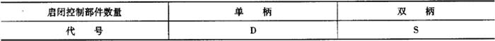①机械式面盆水嘴按启闭控制部件数量分为单柄和双柄两类,代号见表6-86。 表6-86 机械式面盆水嘴分类