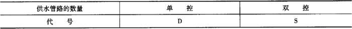 2)按控制供水管路的数量分为单控和双控两类,代号见表6-88。 表6-88 面盆水嘴按控制供水管路的数量分类