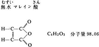 又称马来酸酐、失水苹果酸酐和2,5-呋喃二酮。 特性:无色结晶粉末。有强烈刺激气味。比重1.48。熔点52.8。沸点200°。易燃。易升华。溶于水、乙醇、乙醚和丙酮,难溶于石油醚和四氯化碳。与热水作用而成顺丁烯二酸(马来酸)。 用途:用于合成液体、固体树脂版不饱和感光树脂;是不饱和聚酯树脂双键的主要来源。环氧树脂固化剂等。 保管:容器密闭,防潮、防热、防氧化。使用中避免与皮肤直接接触。 |