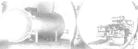 图2-6 活动式水预冷设施内部状况(喷淋式)(Favati,1982) (1)隔热体。可以是冷却池或冷却隧道,用于容纳产品和冷水,隔热体要尽可能防止热辐射和空气的渗入。 (2)冷源。用于降低水温,可用冰或机械制冷设备把水温降到0~1℃。当要预冷的产品数量少或全年利用的季节较短时,最好用冰作冷源,因其开始需要的投资少。但这种方法也有其缺点,如占据空间大,不能精确控制水温和不能配制准确浓度的杀菌剂溶液等。机械制冷可克服冰水冷却方式的所有缺点,但需较大投资。 (3)水源。用水冷却产品,可循环使用或一次性利用。循环用水虽节约资源、较经济,但易传播病菌和污染产品,所以在预冷之前最好对产品进行清洗、整理,去掉泥沙和杂物。在预冷中注意适时更换水或在水中加杀菌剂(漂白粉、次氯酸盐或通入低浓度氯气),以克服传播病菌和污染产品的缺点。若以不断供给新冷却用水的一次性利用方式预冷,将会造成很大的资源消耗,但可避免病菌的传播。 (4)产品和冷水的接触方式有三种。①浸渍:产品被完全放入冷却水池内,水通常在泵的作用下做封闭运动,以维持均匀的温度和缩短冷却时间。一般在水槽底部有冷却排管,上部有传送带。果蔬一边浸渍在冷却水槽,一边用传送带输送出来。②喷淋或喷雾:用泵把冷水抽到隧道顶部,由顶部上的喷头喷洒在产品上。产品放在隧道底部的滚轴传送带上保持静止或缓慢向前移动。耐压产品用的是大孔径喷头(喷淋),柔软产品用的是小孔径喷头(喷雾)。冷却产品后的冷却水返回冷却水槽,再由水泵抽到冷却塔,这样使冷却水反复循环。③混合法:包括先喷水后浸渍或先浸渍后喷水。一般产品先浸入水中,后进行喷淋。包装容器完全放在水槽里,产品浮出水面,被水流推上传送带,在传送带上被冷水喷淋,然后洗刷,在隧道内由冷空气干燥。 2.真空预冷 真空预冷是在减压条件下,使果蔬表面的一部分水迅速蒸发,水在蒸发中吸热而使果体或菜体冷却。真空冷却装置主要包括:真空罐、真空泵、冷冻机和捕集器、喷雾器以及测量仪表等(见图2-7和图2-8)。