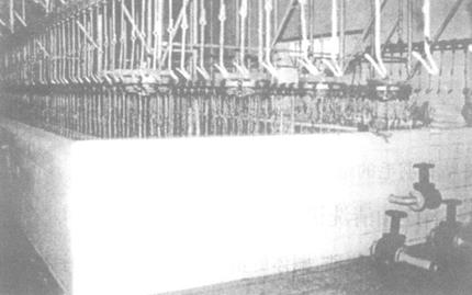 缺点:贮水池占地面积大,一次性用水量较高,不太适用于高生产率的屠宰生产线。