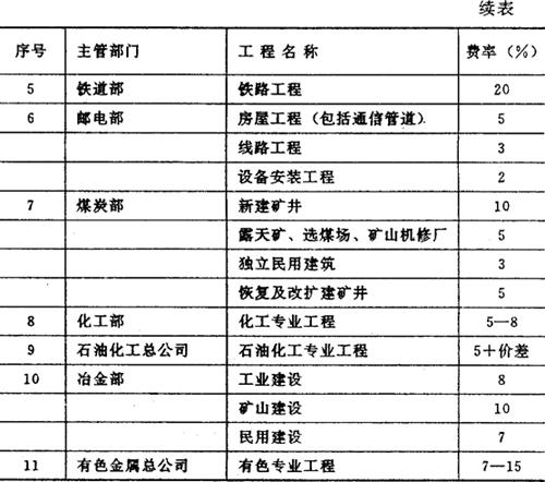 | 释义 | 预备费 预备费也称不可预见工程和费用(未预见工程和费用)。是指在初步设计和概算中难以预见的工程和费用,其中包括实行按施工图预算加系数包干的预算包干费用,其用途如下: ①在进行技术设计、施工图设计和施工过程中,在批准的初步设计和概算范围内所增加的工程和费用。 ②设备、材料的价差。 ③由于一般自然灾害所造成的损失和预防自然灾害所采取的措施费用。 ④在上级主管部门组织竣工验收时,验收委员会(或小组)为鉴定工程质量,必须开挖和修复隐蔽工程的费用。 编制方法:以“单项工程费用”总计和工程建设其他费用(不包括本项费用)之和,按照规定的预备费率计算。引进技术和进口设备项目应按国内配套部分费用计算。 目前,各专业部所属设计院在预备费计算时,均执行各主管部门规定的费率。由于专业性不同,工程内容不同,设计深度不同,其规定的费率也不同。 例如:各专业部编制设计概算的预备费率如表4-33 表4-33 各专业部预备费率表