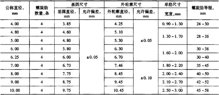 2)螺旋肋钢丝的尺寸及允许偏差应符合表5-78的规定。钢丝的公称横截面积、每米参考质量与光圆钢丝相同。 表5.78 螺旋肋钢丝的尺寸及允许偏差