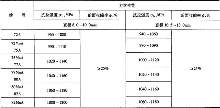 2.力学性能(表5-74) 表5-74 预应力钢丝及钢绞线用热轧盘条的力学性能