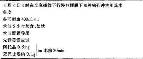 (2)亚急性及慢性硬膜下血肿手术治疗术前医嘱