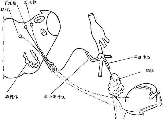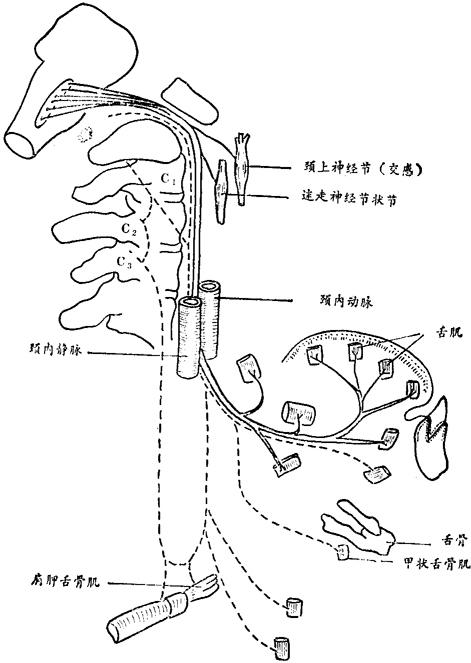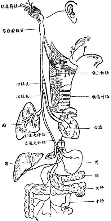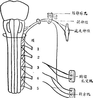 图47 迷走神经分布图 (八)副神经:转颈、耸肩运动有无障碍,胸锁乳突肌、斜方肌有无萎缩,双侧肌力是否相同(图48、49、50)。