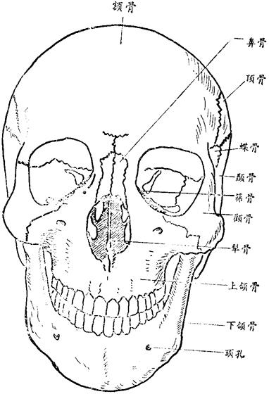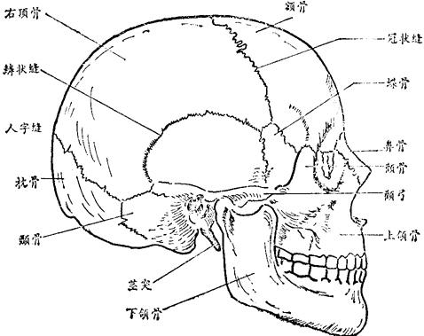 | 释义 | 颅骨 颅骨分颅盖和颅底两部分。 一、颅盖:颅盖由成对的颞骨和顶骨,不成对的额骨、蝶骨、枕骨和筛骨组成。颅盖属于扁骨,由骨密质构成,可分为外板和内板,内外板之间由骨松质组成板障,内含板障血管。内板有脑膜中动脉血管压迹、矢状窦压迹和蛛网膜粒压迹。在观察颅骨平片时,勿与骨折线或颅骨破坏混淆。颅盖骨连接处形成锯齿状骨缝,有冠状缝、人字缝、鳞状缝。颅盖的厚薄不均,平均约为0.5厘米,颞骨和枕骨鳞部较薄,故外力打击时易造成骨折。颅盖与颅底交界线上有四个骨质增厚部分,即鼻根、颞骨颧突、乳突和枕外粗隆,其连线以上为颅盖,以下为颅底(图2、3)。