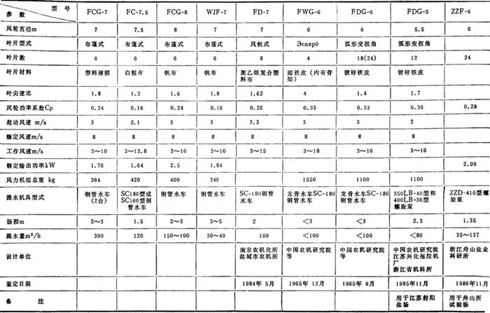 表2-8-6 我国部分低扬程、大流量风力提水机的主要性能和参数