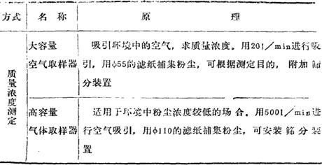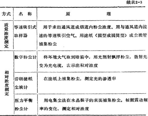 表2-3 各种浮尘测定装置的原理