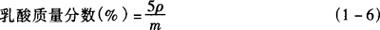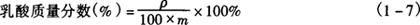 式中 F——0..1mol/LNaOH溶液的因数 a——消耗0.1mol/LNaOH溶液的体积,mL b——取标准液的体积,mL 准确取标准液1mL,5mL,10mL,各加水至10mL,即为标准曲线用标准液(此液分别含乳酸0.1×c′mg/mL、0.5×c′mg/mL、1.0×c′mg/mL)。 4.测定方法 4.1 测定条件 用带氢火焰检测器的气相色谱仪(FID-GC),按以下条件进行测定。 填充剂:60~80目的含10%聚乙二醇6000的对苯二甲酸担体 柱:玻璃柱,内径3mm,长50cm 柱温:160℃ 检测器及进样口温度:200℃ 载气:氮气,50mL/min 4.2 标准曲线 准确各取1μL标准曲线用标准液,注入气相色谱仪中,由所得乳酸的峰高,绘制标准曲线。 4.3 分析结果的表述 准确吸取1μL样品溶液,注入气相色谱仪中,测得峰高,查标准曲线得样品溶液中乳酸的浓度(mg/mL),按式(1-6)计算出样品中乳酸的含量(%)。