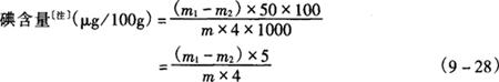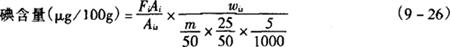 式中 m1——样液含碘量,ng m2——试剂空白含碘量,ng m——样重,g 注:本法测出的碘为样品中总碘。 |