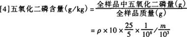 式中 ρ——样品溶液中五氧化二磷浓度,μg/mL m——样品质量,g 磷酸含量(g/kg)=五氧化二磷含量(g/kg)×1.381 磷酸二氢铵含量(g/kg)=五氧化二磷含量(g/kg)×1.621 磷酸二铵含量(g/kg)=五氧化二磷含量(g/kg)×1.861 磷酸一钾含量(g/kg)=五氧化二磷含量(g/kg)×1.918 磷酸二钾含量(g/kg)=五氧化二磷含量(g/kg)×2.454 磷酸氢钙含量(g/kg)=五氧化二磷含量(g/kg)×1.776 磷酸钙含量(g/kg)=五氧化二磷含量(g/kg)×2.185 磷酸二氢钙含量(结晶)(g/kg)=五氧化二磷含量(g/kg)×2.200 磷酸二氢钠含量(无水)(g/kg)=五氧化二磷含量(g/kg)×1.691 磷酸氢二钠含量(结晶)(g/kg)=五氧化二磷含量(g/kg)×5.046 磷酸氢二钠含量(无水)(g/kg)=五氧化二磷含量(g/kg)×2.000 磷酸三钠含量(结晶)(g/kg)=五氧化二磷含量(g/kg)×5.356 磷酸三钠含量(无水)(g/kg)=五氧化二磷含量(g/kg)×2.310 注:[1]样品中共存的糖、无机盐等,用水洗去除。 [2]本操作中仅流出正磷酸。 [3]水解生成的磷酸和钼酸铵形成络合物,可溶于有机溶剂。