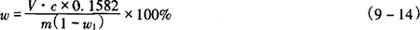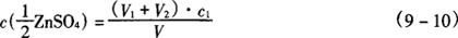 式中 V1——滴定消耗EDTA标准滴定溶液的体积,mL V2——比对试验消耗EDTA标准滴定溶液的体积,mL c1——EDTA标准滴定溶液的浓度,mol/L V——硫酸锌溶液的体积,mL 2.操作步骤 称取0.4g试样,精确至0.0002g,置于100mL烧杯中,加12mL盐酸溶解,移入250mL容量瓶中,加水至刻度,摇匀。用移液管移取25mL试验溶液置于300mL锥形瓶中,加25.00mLEDTA标准滴定溶液,加50mL水、10mL氨-氯化铵缓冲溶液,放置5min,加4滴KB指示液,用硫酸锌标准滴定溶液滴定至溶液由蓝变为紫色,30s紫色不褪即为终点。 同时作比对试验。 3.分析结果的表述 磷酸氢钙(CaHPO4·2H2O)质量分数(w)按式(9-11)计算: