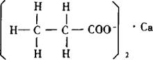 式中 w——乙酸钙含量的质量分数,% V——乙二胺四乙酸二钠标准滴定溶液体积,mL c——乙二胺四乙酸二钠滴定溶液的实际浓度,mol/L m——样品的质量,g w1——水分的质量分数,% 0.1582-每毫摩C4H6O4Ca质量,g/mmol 所得结果取两次平行测定的算术平均值,保留4位有效数字。 注:水分测定:称取样品约0.2g,准确至0.0002g,按《中华人民共和国药典》1990年版二部附录55页费休氏法测定。 5.允许差 两次平行测定结果的相对偏差不超过0.3%。 五、活性钙 化学名:活性钙(Active Calcium) 别名:活性钙离子 化学结构:本品所含钙的主要成分为氢氧化钙(约98%),另含微量氧化镁(MgO)、氧化钾(K2O)、三氧化二铁(Fe2O3)、五氧化二磷(P2O5)、氧化钠(Na2O)和锰离子。 六、丙酸钙 化学名:丙酸钙(Calcium propionate) 结构式
