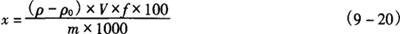 5.2 回归方程法 由各元素标准稀释液浓度与对应的吸光度计算出回归方程(也可以输入计算器得出回归方程),计算见式(9-19)。 ρ=ay+b (9-19) 式中 ρ——测定用样品中元素的浓度(可由计算器直接得出,μg/mL) a——曲线斜率 y——元素的吸收度 b——曲线的截距 由回归方程或计算器得出测定样液及试剂空白液的浓度后,再由式(9-20)计算。